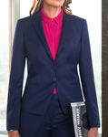 54% Polyester, 44% Wool, 2% LYCRA® Elastane. Short, slim fit 2 button jacket with cutaway front, slim notch lapel, front breast darts, jetted pockets, plain back, tailored back panels, 1 inside pocket Centre back length at size 12R = 55.5cm